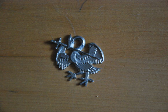 Dazugehöriges Zinn-Abzeichen Schwan-mit-Schwert